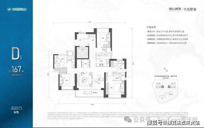 D2户型:167㎡5房2厅3卫