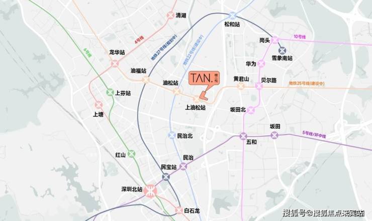 直线距离地铁25号线(一期)上油松站(建设中)约100米,同时25号线(建设中)与4号线、22号线(建设中)、27号线(建设中)交汇,一站一换乘,快速畅达南山深圳湾超级总部基地、福田CBD、坂田华为基地、罗湖等核心区。
