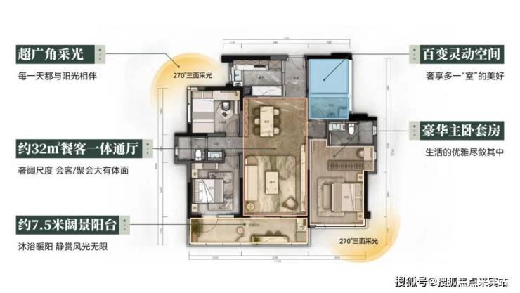 作为远洋天著二期的性价比王者产品,约116㎡户型可谓刷新中山“室”界观。
