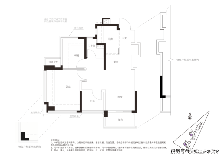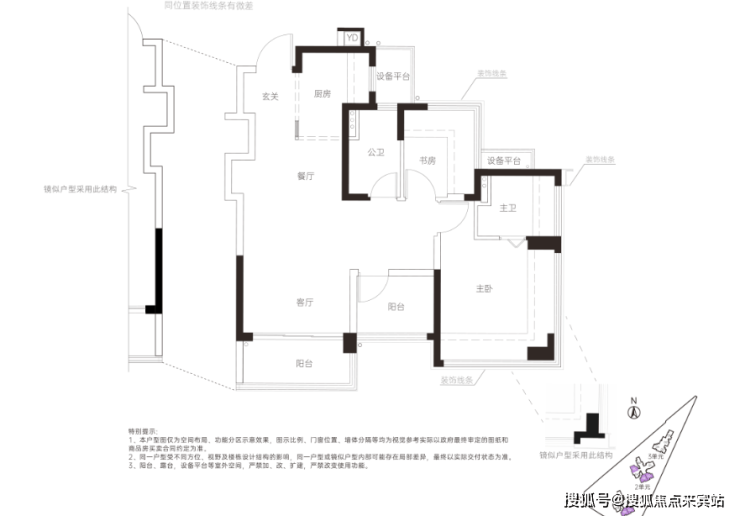 ●79-82㎡3房2卫(朝南):刚改首选户型!在69㎡基础上升级双卫,彻底解决多人口家庭的如厕冲突,主卧做成套房,私密性大幅提升,东南朝向通透性好,客厅3.4米开间,动静分区明确。