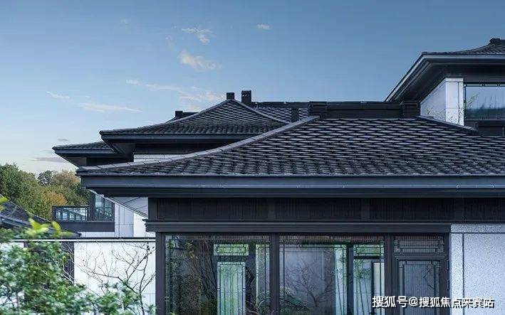 屋面瓦部分,将传统的小青瓦与筒瓦加以解构、变化,呈现出独特的肌理效果。纵向排列的瓦片让屋面过渡平滑连续,建筑更显挺拔,同时牵引视线向更高远的空间。