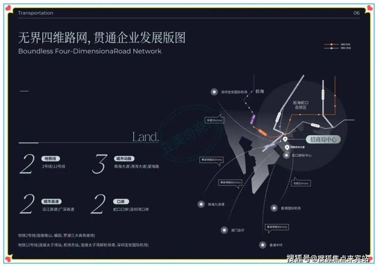 口岸:深圳湾口岸、蛇口邮轮中心、前海口岸(规划中),链接深港,通向世界