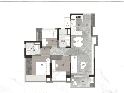 107-117㎡:精装四房两卫,横厅设计,多孩家庭终极改善。