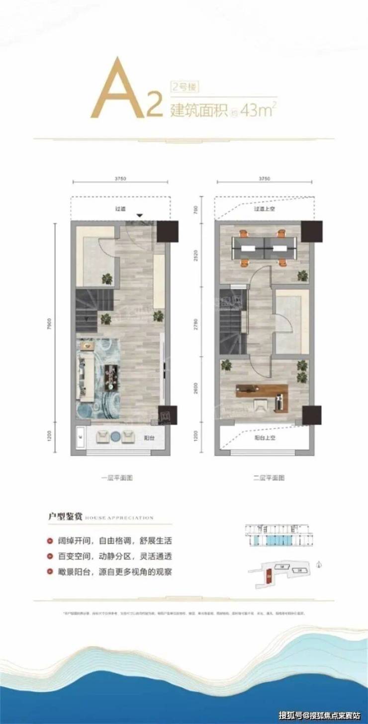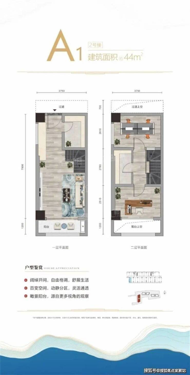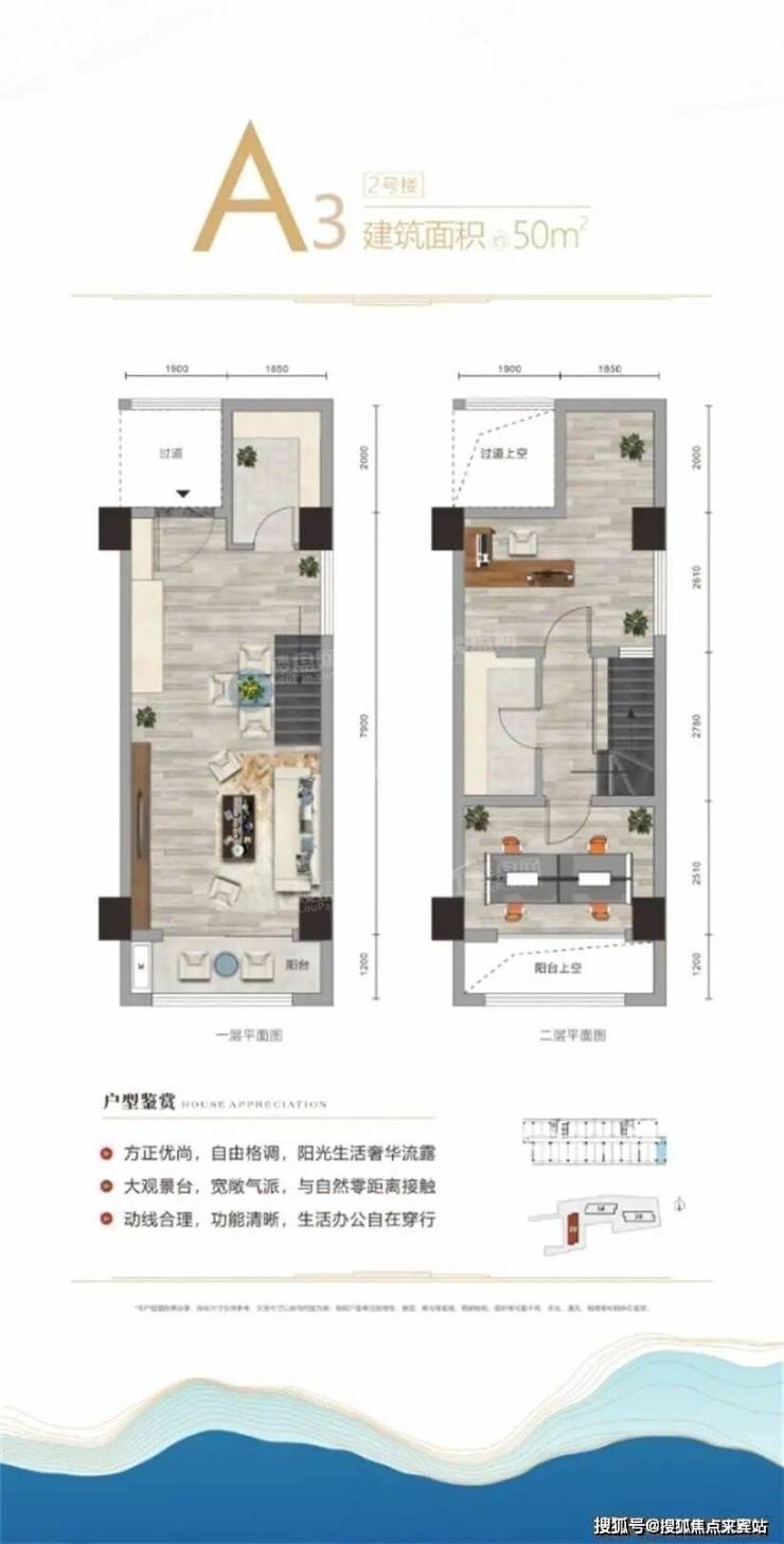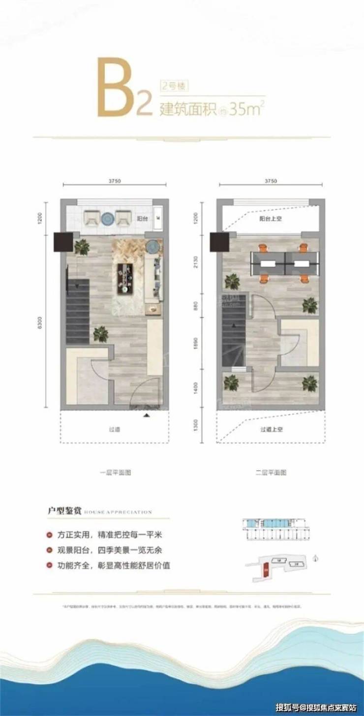 【核心卖点】项目规划建筑面积约35-50㎡的复式,户型方正实用,精准把控每一平米,瞰景阳台尽收四季美景,多功能布局彰显高性能延展空间,匠芯筑造亲海生态社区。