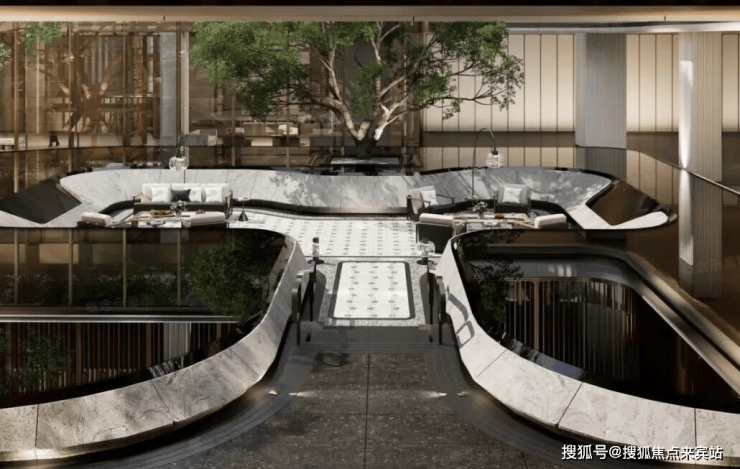 空间营造上,创新性构建“生机底盘”,通过“地上三层、地下三层”的立体复合结构,从地下空间到空中花园,车库、商业、园林与配套垂直叠加,形成一座“立体生活城”:地下层的“生境之斗”将阳光、绿植引入地下;