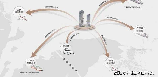 ©通达的一平方公里湾区复合枢纽 海陆空一站接驳深圳一个无需换乘,即可轨道直达五大出境口岸的超级枢纽,海陆空立体通达,链接全球,地下交通层可以直接办理值机。