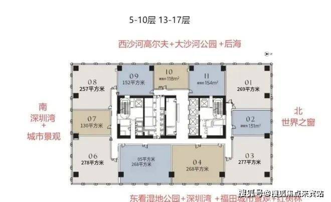 【5-10F/13-17F 118~278㎡ 6梯11户】