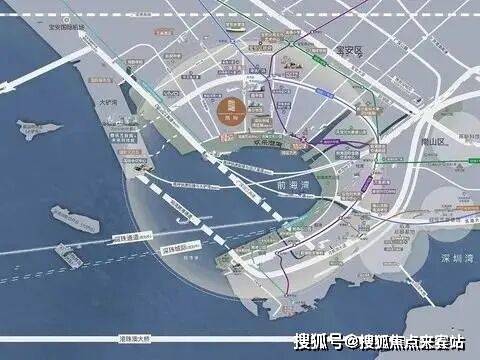 陆:亚洲最大交通枢纽——前海综合交通枢纽、妈湾跨海大道、广深沿江高速、深惠城际铁路(在建)、深港西部快轨、深中通道(在建)、滨海大道、穗深城际线、深珠城际线、深茂铁路深圳段