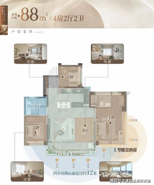 ☑️ 约88㎡灵动4房|人生全周期适配✨四房灵动空间随心切换,让家随生活成长✨四开间朝南+三面环绕采光加持,通透感拉满✨开放客餐厨+约5.7米阳台贯通成 “家庭互动场”
