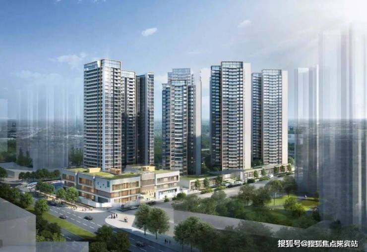 🏠国际现代化外立面:通过局部石材、铝板搭配,设计简洁现代化的外立面,组成高低错落的城市天际线。