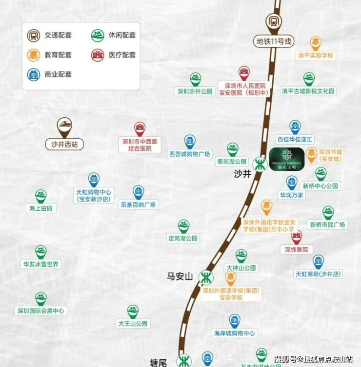 交通配套:锦和玉鸣府近地铁11号线沙井站C、D出口,步行7分钟。2站达机场东站转1号线,8站宝中,10站前海,15站南山高新园。运营6:12-23:00,高峰4分钟/平峰8分钟。周边公交丰富,如M351路25分钟直达12号线怀德站。
