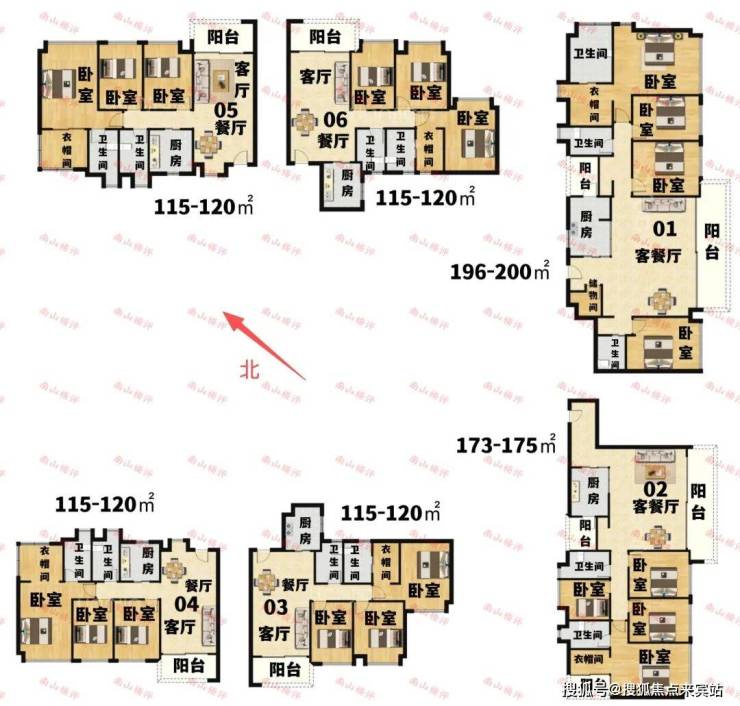 润府四期即润玺一期,2020年底开盘、2022年底入伙,共4栋楼及一所幼儿园,目前还属于限售状态,只能租不能卖。1栋总高62层、2栋总高60层、3栋总高57层,1-3栋都是5梯6户,4栋总高42层、3梯5户。润府四期主要的户型是99㎡3房、120㎡4房、175㎡4房、190㎡4房,总住户约1274户