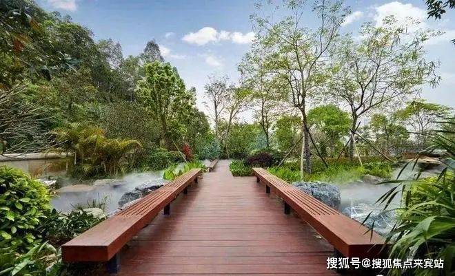 其承大国之院落,取云山之厚重,打造现代版履道坊——花溪谷,绿植山体环绕,重点打造瀑、潭、溪、涧、湖等不同形态的水景,配以桥、亭、阶、坡景成就一座院藏云山的大美园林。