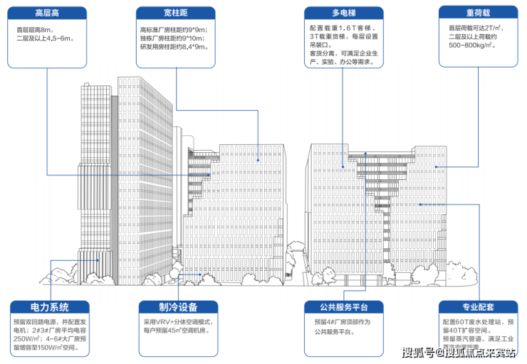 项目深入研究“工业上楼”空间标准,围绕“20+8”产业集群工艺流程、技术创新需求,突出大平层、宽柱距、重荷载、高层高等高标准设计,并配备生物医药生产空间所需的双回路电源、蒸汽管道、废水处理等设备。