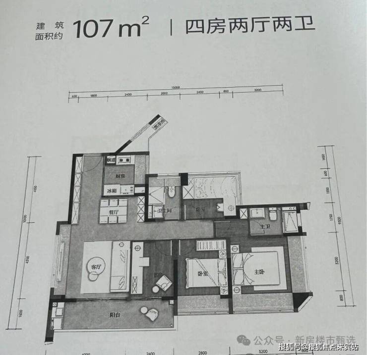 建筑面积约107㎡户型(竖厅)-4房2卫