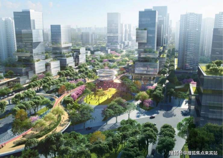 商业方面,项目西侧规划约14.6万方商业中轴,引入文娱、体育、潮流买手店等前沿业态,并与城市公园绿轴结合,打造“半开放、半自然”的消费体验。
