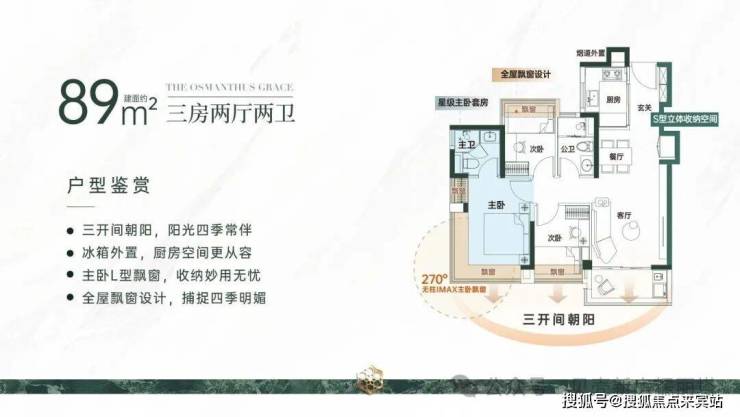③9 个飘窗赠送+强大收纳;④55 米跨度入口星空顶,五星级酒店归家仪式感;