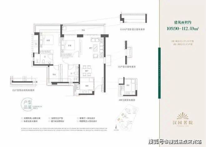 汉园茗院以改善型产品为主,户型面积包括109-112㎡三房两厅两卫、121㎡四房两厅两卫、157-159㎡五房两厅三卫和168-169㎡五房两厅三卫。