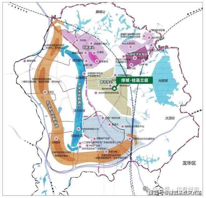 光明中心区定位是光明科学城的生活服务中心,以约208万方科学公园为核心,规划成片高端住宅区及商业、市政配套于一体的高复合城市综合体,构造深圳北部中心的“城市心脏”,汇聚科学展馆、国际会议中心、交通枢纽和休闲中心等多元功能。