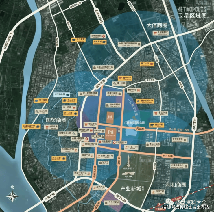 2.中国的古镇、世界的灯都,古镇作为灯都,在全球都享负盛名,现在古镇的灯饰产业要全面转型,再一次腾飞!政府在新兴大道以南的区域,总投资超过200亿,建设规模300万m,打造一个新的智能产业综合体集群——古镇园(与本案直线距离0.5km),包含会展中心、酒店、商业街、国际社区、博物馆、科技中心、图书馆、医疗设施全功能的产业园区,还拥有整个古镇最高的,360米的地标建筑。同时规划1328亩TOD新城(与本案距离1.7km),缩短古镇和湾区核心城市距离、升级城市界面、引进高产值企业,提升古镇产业的附加值与对外贸易的层级。未来古镇将不再是中山的古镇,而是世界的古镇,价值将超越中山城区。