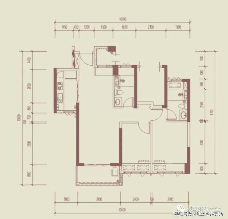 89m两房两厅两卫纯南向户型,90m内三房还带18m主卧套间。