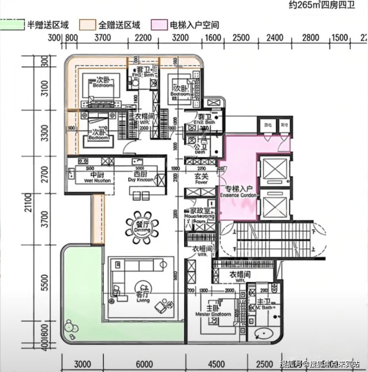 而且,全都是纯大户型,主力户型面积约143-168-189-190-193-245-257-265-332-500㎡(具体以官方为准),总计约616户,分为2梯2户与3梯3户,层高约3.5米,整体得房率估计会接近100%,但估计依然未能突破飘窗的限制,部分房间使用面积估计就没那么理想了。