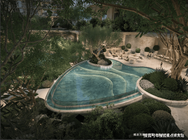 建筑外立面大概率是玻璃幕墙+铝板的结合,建筑主体转角处规划设计为圆弧形玻璃、至少7米的超大超长阳台,顶楼500㎡户型还可能带空中泳池(官方为准)。