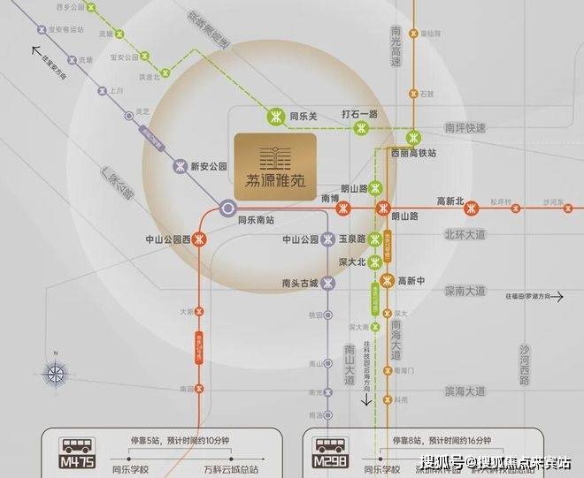 轨道交通:12号线同乐南站(直线约800m),4站到宝中和科技园,5站到前海和后海;15号线(建设中)同乐关站(直线约1.5km),2站到西丽高铁站,贯穿前海、后海、南山、宝安等重要片区,环经济发展核心区域。