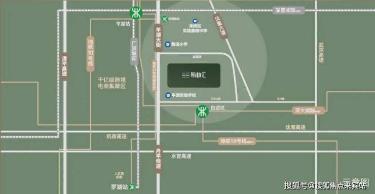 【项目位置】 岗宏翰林汇位于深圳市龙岗区平湖街道平湖大街与湖岭路交汇处,紧邻在建的园岭学校和平湖实验学校。平湖作为深圳17个重点发展区域之一,定位为“金融+科技+总部”特色的战略新兴产业基地,同时也是深圳跨境电商产业的重要聚集地,其跨境电商总量及规模在全市处于领先地位。