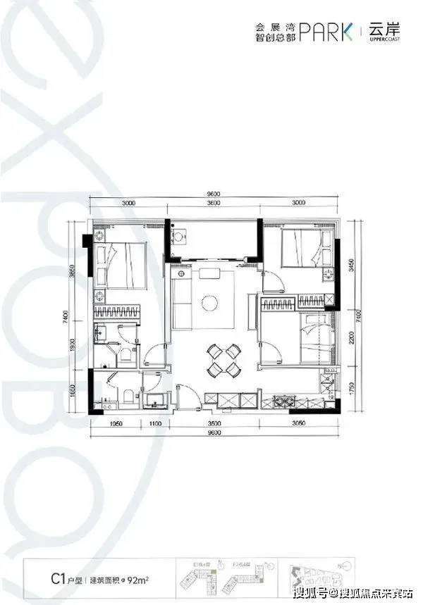 【C1户型:92㎡】房型:三房两厅两卫朝向:T5、T6(正南)户型优势:端头位、双面采光、主客分区、无敌景观 (瞰河)
