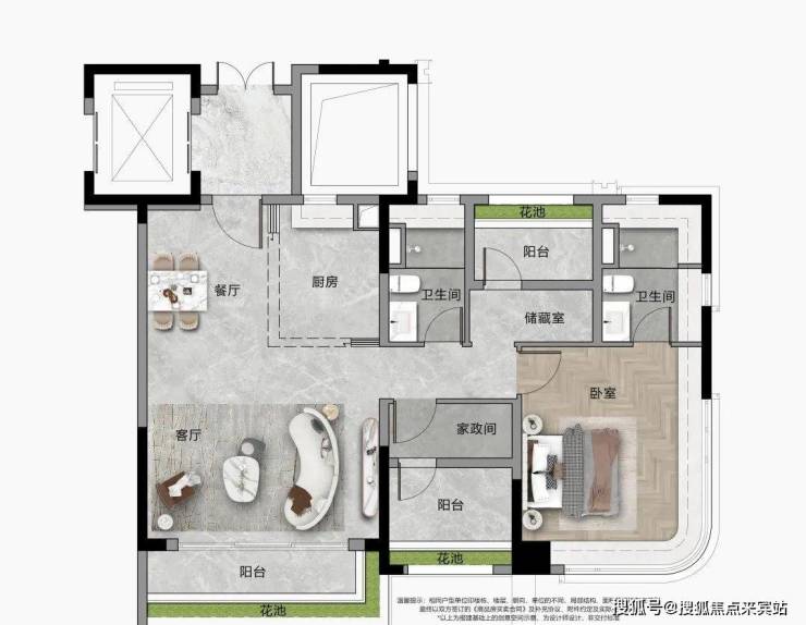 “宽幕视野” 南北通透双视野,主卧270°转角飘窗