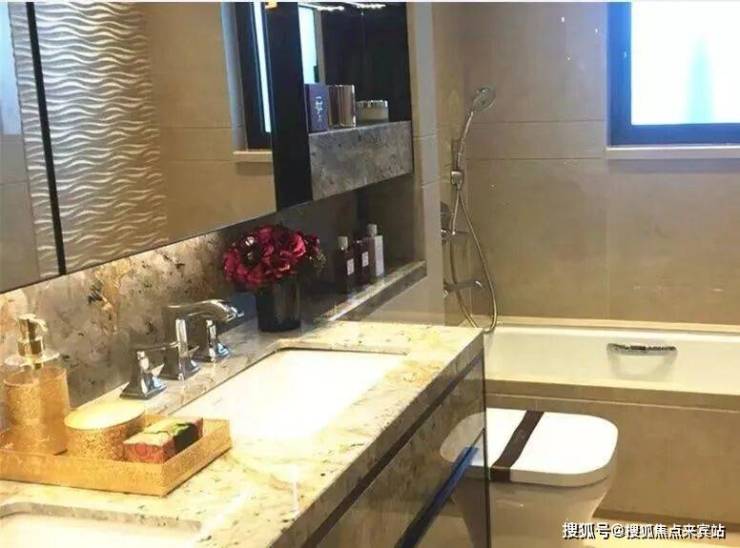 主人套厕以暖色云石作设计,并设有浴缸,有两个洗手盆方便住户。
