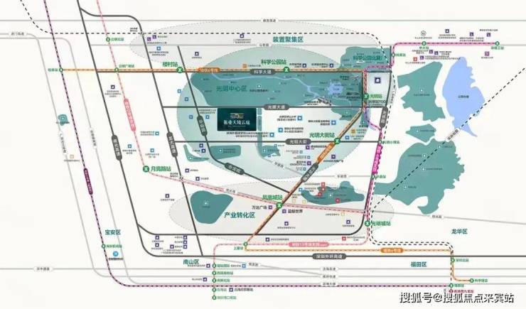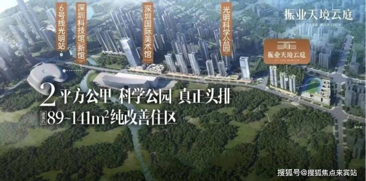 振业天境云庭位于光明区新湖街道光辉大道与华夏二路交汇处西南侧,南临安联尚璟府,北侧即是科学公园。
