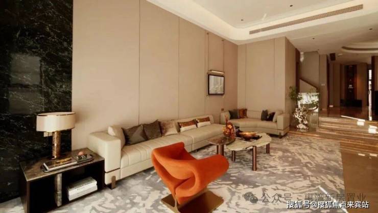 首层客厅约5.1米挑高,以平层近2倍的高度,打破空间束缚;同时下沉式设计,营造空间层次感,整体极为大气奢阔。