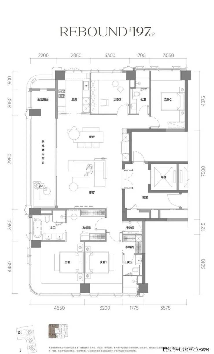 建面约197㎡户型配备7.95米长的景观阳台和2.05米长的生活阳台,连在一起达到了约10米的超长阳台,加上约2.2米的超宽尺寸,整个阳台的面积达到了约22㎡,相较其他竞品来说不是一般的阔绰。