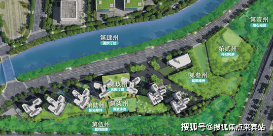 立体绿洲系统:内外双园围合形成生态岛屿,榕心光径、翡翠绿洲等九大景观节点串联成链,构建出约400米乌桕风屏隔绝城市喧嚣;