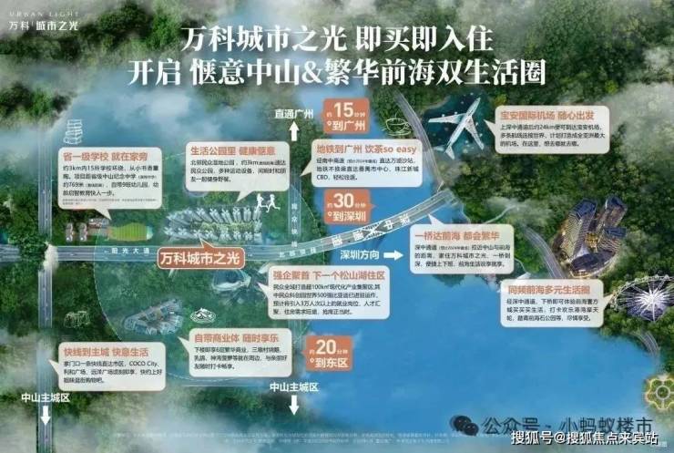 深中通道:项目距深中通道中山匝道口仅16公里(预计2024年通车),2站直达深圳前海,通勤时间缩短至40分钟,实现“深圳工作,中山居住”的理想。