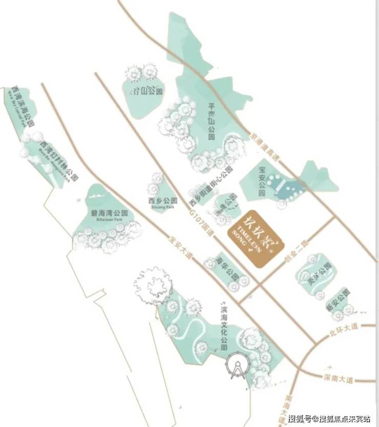 13大公园环绕,户外休闲便利,项目周边配备13大公园:流塘公园、宝安公园、碧海湾公园、西乡公园、灵芝公园、新安公园、滨海文化公园等,项目距离宝安公园直线距离仅1.5公里,距离流塘公园直线距离仅607米,出入公园环绕,宜居属性高。