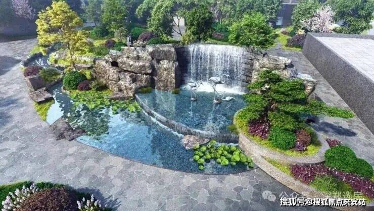 三重水景:提取凤凰山的形态纹理将自然山林元素与现代都市生活有机结合,在有限的面积之中,还原无限的自然山水之趣。