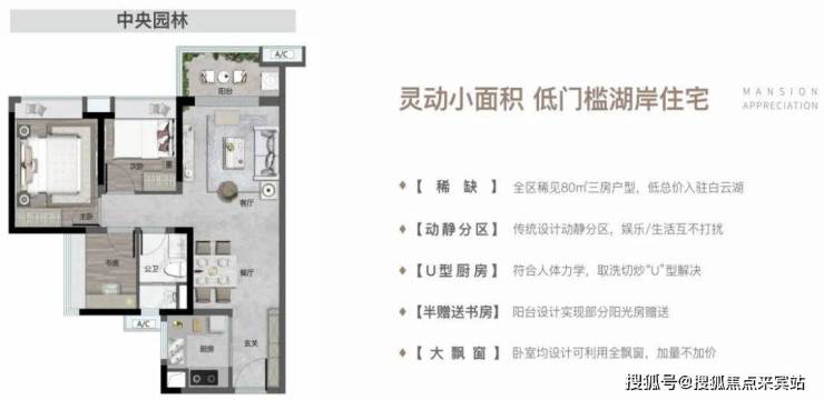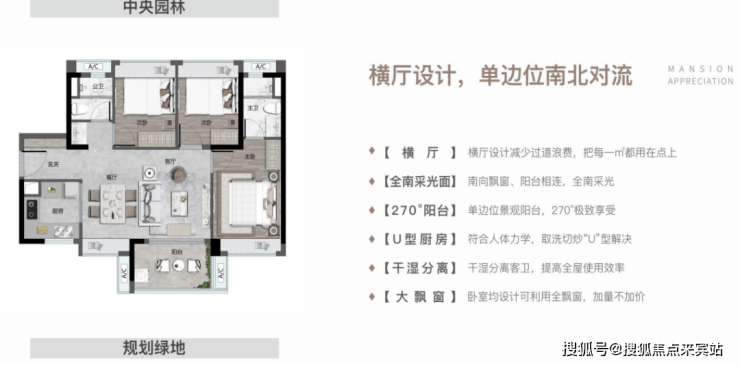 5,户型设计合理:空间利用和功能性布局较好,居住空间更加舒适实用。例如,部分户型南北通透、通风性好;有的户型卧室带有大飘窗,采光面大且空间尺度感更好;还有的户型做到了动静分离,能使家人互不干扰。