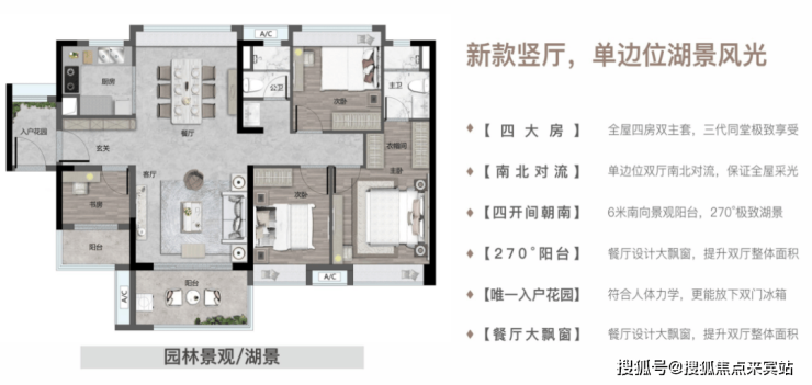 项目整体采用围合式楼栋布局,可以最大程度看白云湖,直接把一线湖景,搬进了业主家中。