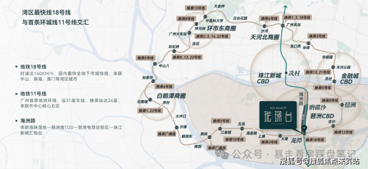 ⑥ 地铁11+18号线双轨交汇枢纽(1站琶洲-2站珠江新城-3站金融城)