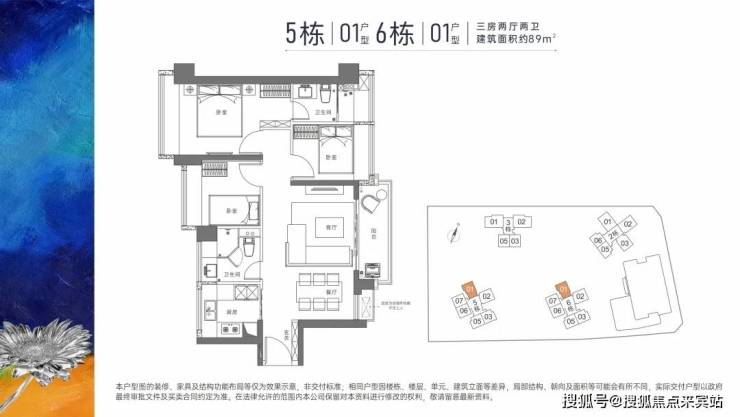 而89平的3房2厅2卫户型,户型尺度更阔绰,不仅拥有1个套间,还比市场上普通的89平户型格外多出一个卫生间。
