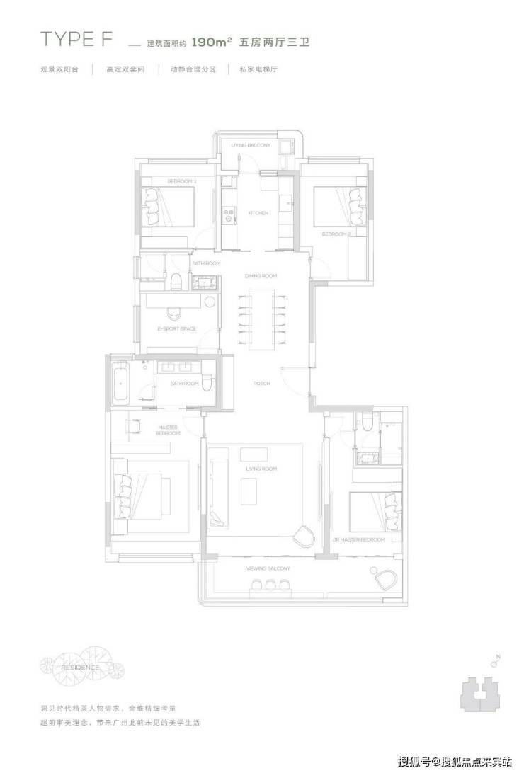 【190㎡双阳台户型】观景双阳台-高定双套间-私家电梯厅-双洄游动线