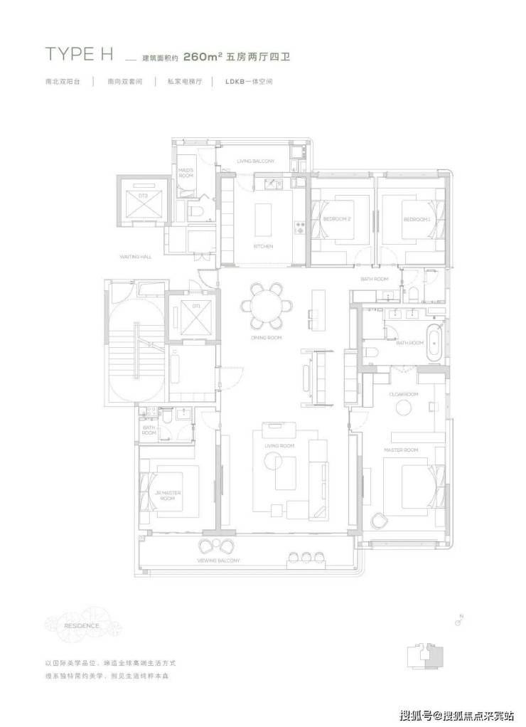 【260㎡户型】南北双阳台-南向双套间-私家电梯厅-LDKB一体化