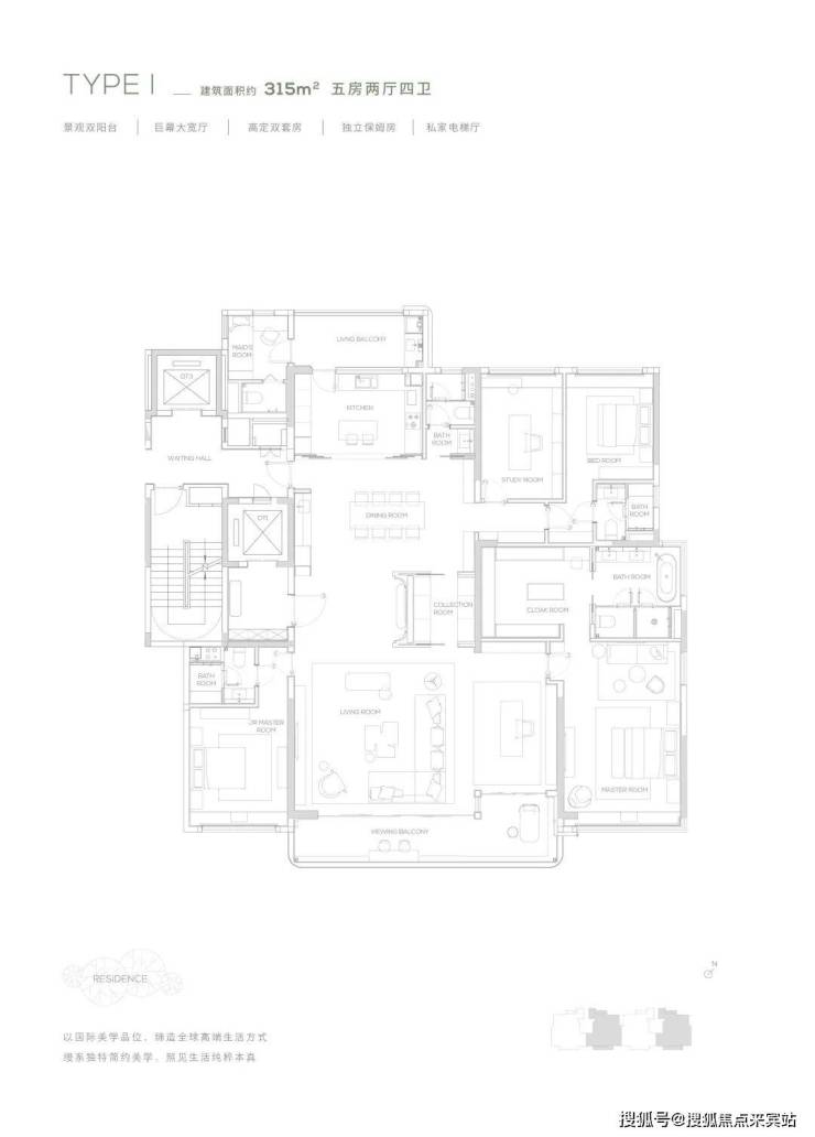 【315㎡户型】南北双阳台-独立保姆房-巨幕大宽厅-私家电梯厅
