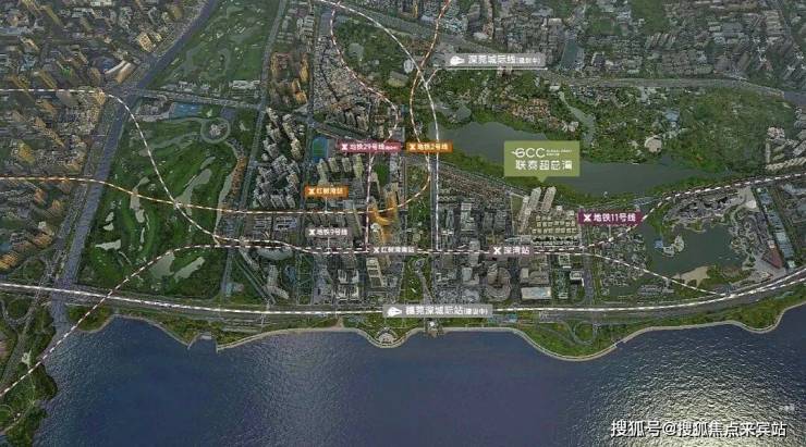 聊完项目本身,再看它的区位,这才是它最核心的价值锚点。联泰超总湾位于深超总东端门户,深湾四路与白石路交汇处,属于片区的"门面担当"。先说说交通,项目是妥妥的地铁上盖物业,步行几分钟就能到9号线深湾站C出口,还能近距离接驳2号线红树湾站。深超总片区规划了"六轨六站"的立体交通网络,包括已经通车的地铁2、9、11号线,还有规划中的29号线以及穗莞深、深莞城际轨道,未来出行简直不要太方便。道路交通方面,滨海大道(总部基地段)的交通综合改造工程主线已经通车了,这条全长5950米的主干道,主路双向8车道+辅路双向6车道,从项目出发30分钟就能直达福田CBD,衔接广深港高铁福田站后,深港半小时生活圈轻松实现。对于经常出差的顶豪客群来说,这种交通便利性无疑是重要加分项。