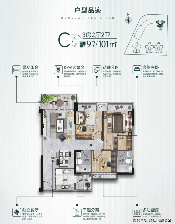 【舒适度高】社区规划容积率仅为2,中山罕见低密度社区;超41.3%绿化率,绿意盎然的中央园林景观;超宽楼距罕见高达约78米,视野开阔,私密性得到极大增强。全新极实用完美洋房,约88-111㎡刚需舒适户型,尽显空间智慧,方正实用,南北通透对流,三面采光,满足您全能居住需求。