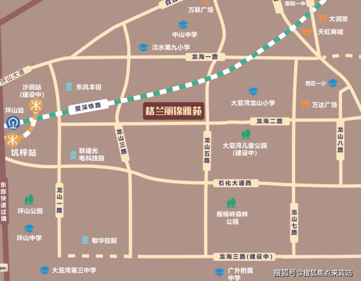 【区位优势】——内嵌式临深3公里,大亚湾西区C位,紧邻龙海二路。