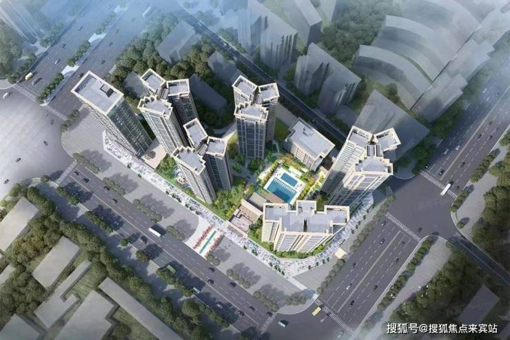 共规划建设7栋楼体,其中5栋为28-38层的高层住宅,共504户,均采用2梯4户或3梯4户的设计,另有1栋6层商业和1栋21层的办公产品,此外,小区内设有泳池配套。